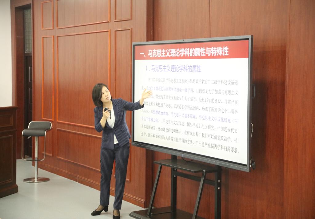 朱琳老师首先以讲解马克思主义理论这门专业学科的属性与特殊性为开端,引导研究生新生进行学科的深入了解与知识梳理。通过细致讲解学科的主要研究方向,引发新生对学科未来发展前景的思考。老师指出:“从科学性角度说,我们是学者;从意识形态角度来说,我们是战士,学者兼战士,这就是我们的历史使命”,这增强了大家身为思想政治教育专业和马克思主义基本原理专业学生的责任感和使命感。其次,为了更好的将所学知识融合到论文写作中,朱琳老师通过讲解学术论文和学位论文的区别及其分类,提出论文写作的生命力在于创新,即观点新、见解新。朱琳老师主张在论文选题中应选择“小题大做”,才能深入研究问题的本质,选题立意的资料收集不仅应依托于理论性的文献、还应依托于社会实践调查结果,并以其定期举办论文选题“会诊”——读书会为例,启发同学们学习的过程也是探索的过程。朱琳老师还对思想政治教育学科基本文献进行了梳理,列举《经典作家思想政治教育重要论述》、《中国共产党思想政治教育重要文献》、《国外思想政治教育研究资料》、《中外思想政治教育著名案例》、《思想政治教育专业博士点主文献》等书目,让思想政治教育专业的同学们对本专业的学习找到了抓手。朱琳老师在关于论文写作与修改应注意的事项中对新生进行了详细指导,提出“凤头”、“猪肚”、“狗尾”的观点,吸引了所有同学们的目光,让同学们在欢声笑语中对论文的写作有了更深的认识。讲座的最后,朱琳老师运用习近平总书记的文章《理论学习要有三种境界》引出,研究生学习理论也要有三种境界,即要有志存高远的追求、要勤奋努力、要独立思考。