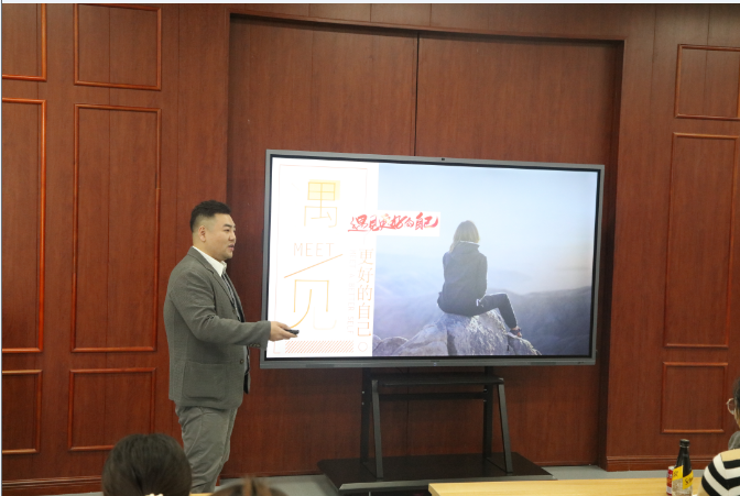 王炳程老师从新时代青年学生所处的环境出发,阐释了如何在新时代新征程上做更好的自己。在第一部分,王老师提出了一个发人深省的话题“遇见·我们的人生都会遇见什么?”老师以风趣幽默的方式给同学们诠释了“用生命影响生命,用灵魂温暖灵魂”的教育理念。在师生互动环节,研一研二学生积极参与,踊跃发言,讲座现场笑声不断。第二部分是关于“知人者智,自知者明”的解读。老师通过现场模拟陌生男女生搭讪的活动,使同学们深刻的理解了“个人模式”是每个人有千差万别的原因所在,个人模式会左右我们所经历事情的结果。人的一生,包括生老病死,只有大概百分之十的事情,是注定发生的。其他的百分之九十都是由于当事情发生的当下,我们不同的应对行为导致的最终结果的不同,这种不同的应对方式叫做个人模式。如果我们的个人模式不改变,结果永远是一样的。人只有认清自己,接受自己,才能做到更好的自己。