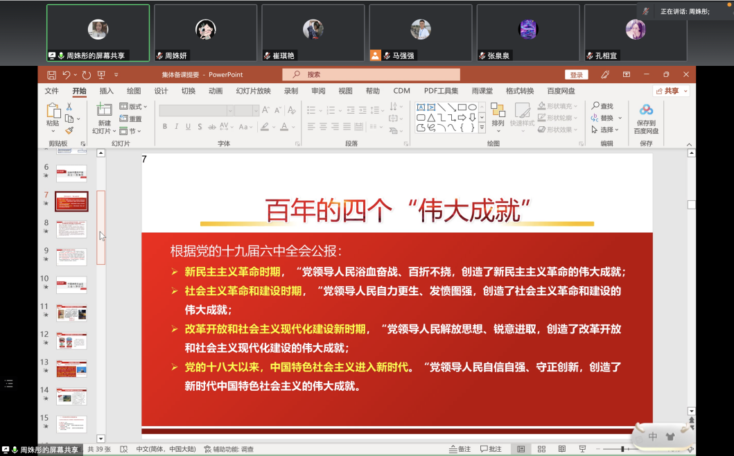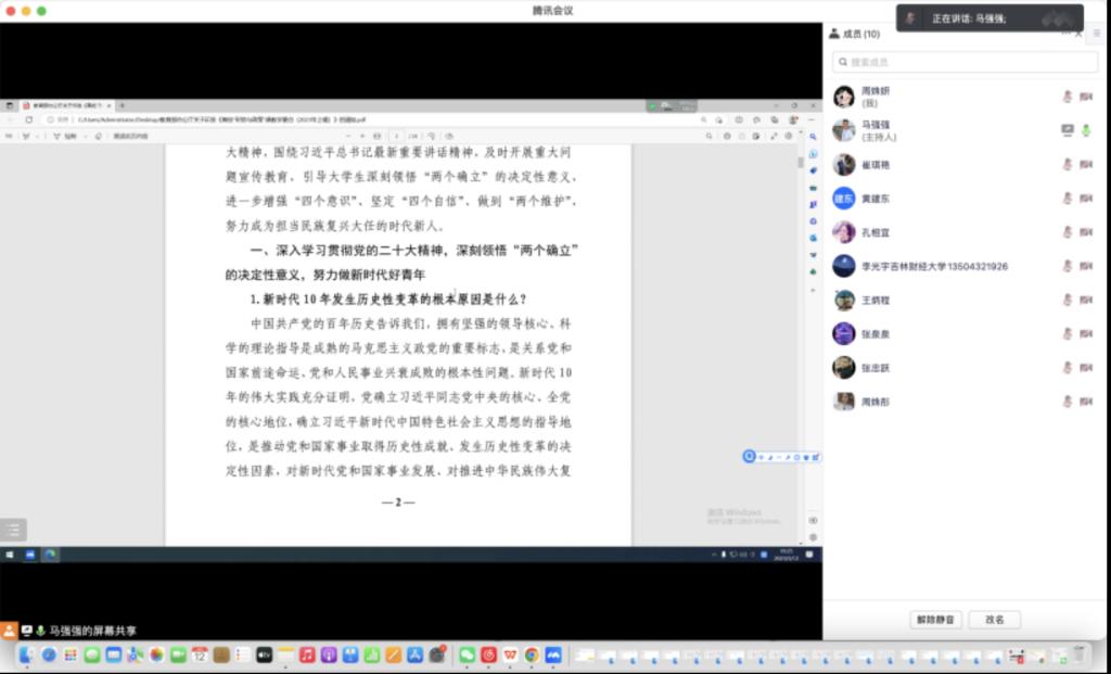 为贯彻落实教育部对高校大学生“形势与政策”课的教学要求,紧跟党中央政策理论创新和国家经济社会发展形势,帮助教师掌握2023年春季“形势与政策”课教育教学要点,3月12日晚上,华体会·体育(中国)官方网站 形势与政策教研室通过腾讯会议开展了集体备课活动,华体会·体育(中国)官方网站 党总支书记黄建东、院长李光宇、教研室全体教师参加了本次会议,会议由教研室主任马强强主持。