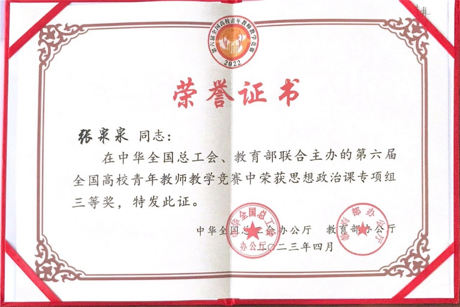 全国高校青年教师教学竞赛是目前国内级别最高、参与度最广、影响力最大的综合性教学赛事,被纳入全国总工会“十四五”全国引领性劳动和技能竞赛。本次竞赛分初赛和决赛两个阶段,共有1800多所高校的近50万名青年教师参加了校(院)、市、省等多层级的比赛。竞赛设置文科、理科、工科、医科、思想政治课专项五个组别,以“上好一门课”为理念,将“立德树人”内容纳入评分要素。竞赛旨在加强师德师风建设、锤炼教师教学基本功,朝着培育“四有”好老师目标,进一步激发广大高校青年教师更新教育理念、掌握现代教学方法。经过层层选拔,吉林省派出5名教师分别代表5个组别参加全国决赛。张泉泉博士作为第二届吉林省本科高校智慧课堂教学创新大赛文科组一等奖获得者,被遴选参赛。