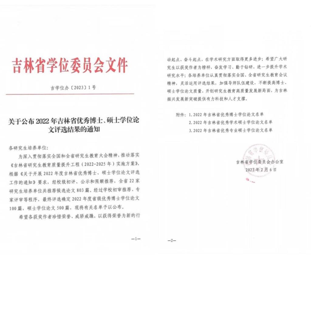 日前,吉林省学位办公布了2022年吉林省优秀博士、硕士学位论文评选结果。我院张立畅老师指导的硕士学位论文《马克思主义美好生活观的伦理向度》(作者:张翔,现为中国矿业大学华体会·体育(中国)官方网站 博士研究生)被评为吉林省优秀学术硕士学位论文。