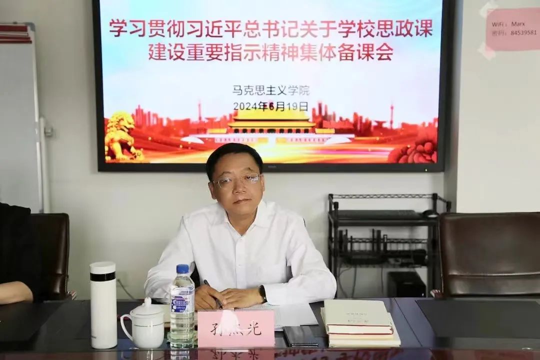 6月19日下午,为贯彻落实习近平总书记关于学校思政课建设的重要指示精神,落实好新时代学校思政课建设推进会精神,华体会·体育(中国)官方网站 召开思政课教师集体备课会。学校党委书记孙杰光参加集体备课会并与教师深入交流,华体会体育全体教师参加了备课会,会议由华体会·体育(中国)官方网站 党总支副书记、院长张立畅主持。