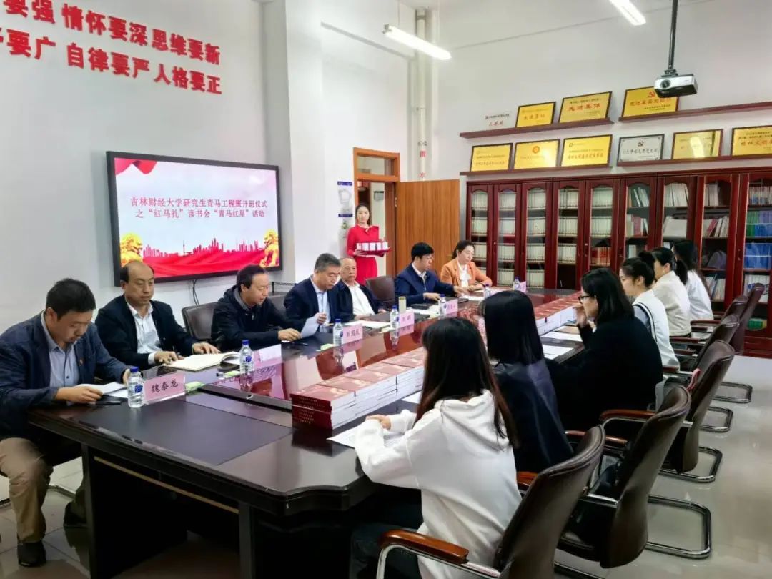 研究生青马工程班开班仪式暨“红马扎”读书会“青马红星”读书活动在华体会体育会议室举行。学校党委副书记刘鹤,原吉林财经大学副校长、现校关工委主任张喜山,原吉林财经大学法华体会体育教授、学校督导组成员、关工委副主任刘国庆,校团委书记孙之光,华体会·体育(中国)官方网站