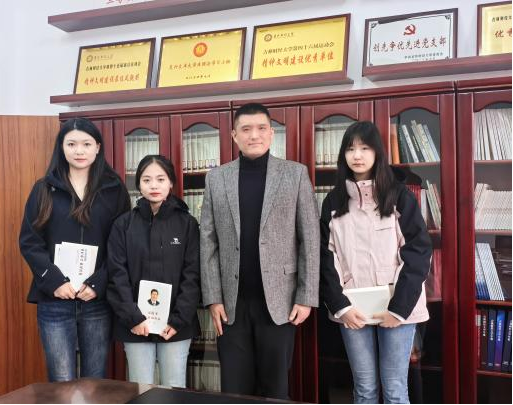 梁策老师将精心准备的《习近平谈治国理政》一书赠送给学生们,希望同学们读原著、悟原理,养成手不释卷的学习习惯,努力充实自己、提升科研能力。
