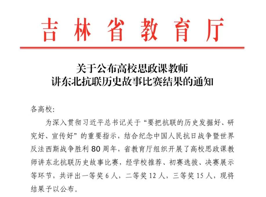 近日,吉林省教育厅公布了高校思政课教师讲东北抗联历史故事比赛获奖名单,我院教师尹兵荣获三等奖。
