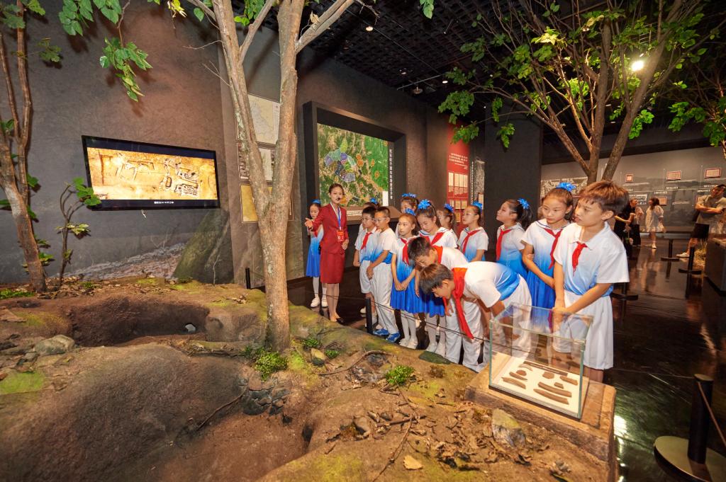 2025年8月30日上午,东北抗联遗址出土文物特展在中国共产党历史展览馆开展,首次集中展出东北抗联遗址出土文物。特展由中共吉林省委、吉林省人民政府、国家文物局主办,黑龙江省文物管理局、辽宁省文物局、内蒙古自治区文物局协办。图为9月13日,北京市小学生参观“红石砬子遗址抗联密营”部分。