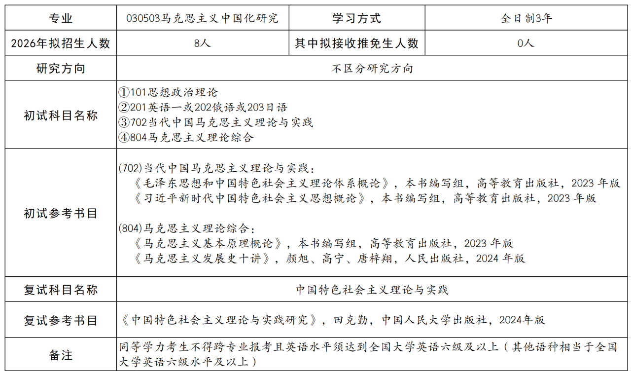 ②马克思主义中国化研究(学硕,代码030503,授予法学硕士学位)