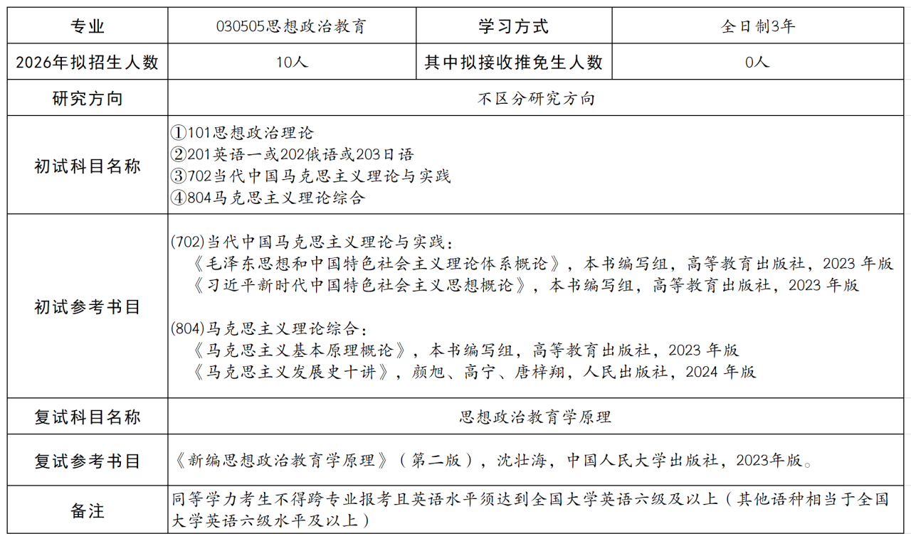 ③思想政治教育(学硕,代码030505,授予法学硕士学位)
