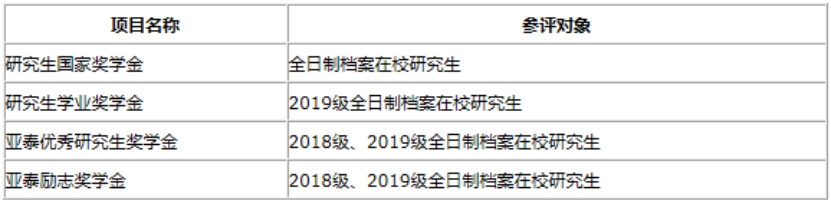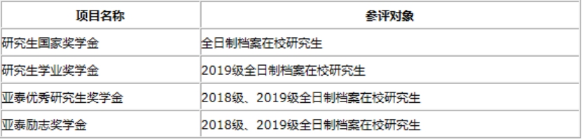 为做好2020年研究生国家奖学金、研究生学业奖学金、亚泰优秀研究生奖学金、亚泰励志奖学金的评审工作,特通知如下: