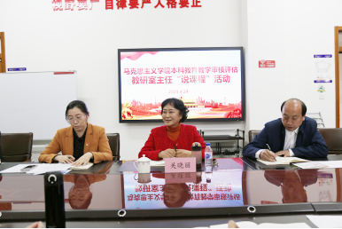 为进一步加强思政课建设、推进教学改革创新,总结和交流课程建设经验,根据学校《关于开展“话专业、说课程”通知》相关安排,激励教师积极投身教育教学改革,主动践行“以评促建、以评促改、以评促管、以评促强”的教育教学审核评估内涵,提升育人质量,4月24日,华体会·体育(中国)官方网站 举办了本科教育教学审核评估教研室主任“说课程”活动,特别邀请校督导组组长关晓丽教授进行观摩和指导,华体会体育党总支书记黄建东及全体教师参加,活动由华体会·体育(中国)官方网站 院长张立畅主持。