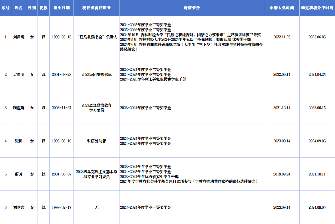 经华体会体育研究生党支部推荐,所在班级民主测评,报华体会体育党委研究同意,拟将刘禹昕、孟显明、隋亚雪、张田、蔚芳、刘芷含六名同志列为发展对象。根据发展党员工作有关要求,现将有关情况公示如下: