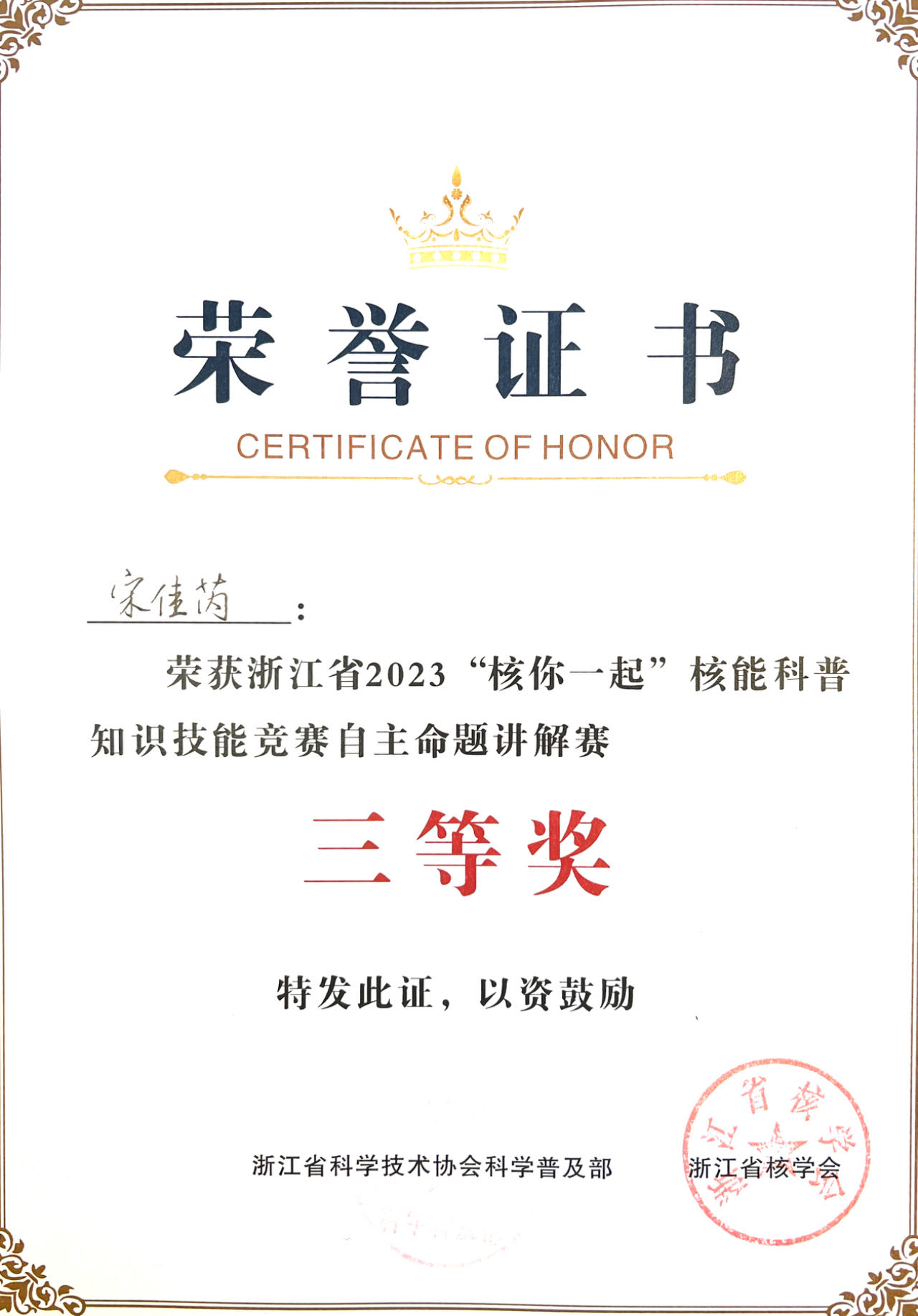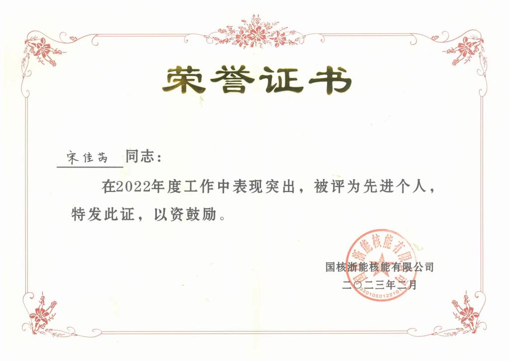 宋佳芮,女,中共党员,华体会·体育(中国)官方网站 2018级思想政治教育专业研究生,在校期间曾获校优秀毕业生、校优秀硕士学位论文、校优秀研究生干部、校优秀研究生等荣誉。2021年毕业,入职国家电投国核浙能核能有限公司党群工作处。工作期间,先后获评公司年度先进个人、工会积极分子、浙江省2023核能科普技能竞赛三等奖等荣誉,连续三年完成国家电投系统党建思想政治立项课题。